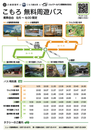 今回運行するこもろ無料周遊バスの時刻表・路線図は、以下をご確認ください。
