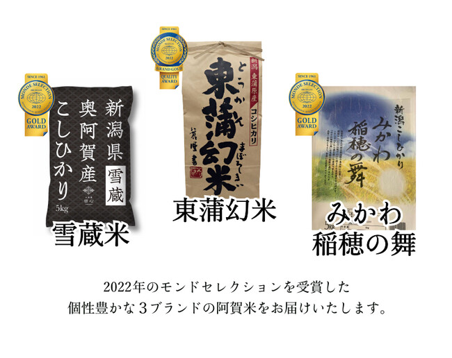 今回、2022年のモンドセレクションで最高金賞を受賞した「東蒲幻米(JA新潟かがやき)」と金賞を受賞した「みかわ稲穂の舞(三川農業振興公社)」「雪蔵米(越後ファーム)」の3ブランドを実際に食べていただき、魅力と美味しさをインスタグラムで伝えてくれるモニターを30名募集いたします。