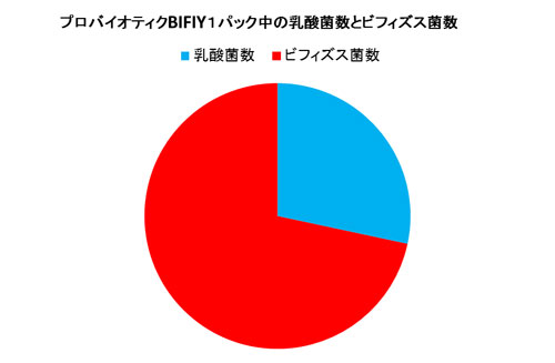 プロバイオティクスは人間の腸内に存在する微生物であり、適切な量が供給されると、宿主に健康上の利益をもたらします。プロバイオティクスGBN1は、ブルガリアの家庭で作られているヨーグルトから分離した乳酸菌ラクトバチルス・ブルガリクスGBN1菌株に因んだ商品名ですが、プロバイオティクスの名に相応しくビフィズス菌数が多いことが特徴です。下図に示すようにプロバイオティクスGBN1には乳酸菌よりもビフィズス菌を2.5倍ほど多く含有しています。
