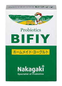ビフィズス菌数の多いヨーグルトを発酵出来る特徴をわかり易くするために、本年10月20日をもって、商品名をプロバイオティクスGBN1から、プロバイオティクスBIFIYに変更しました。BIFIYは、BifidobacteriumのBifiとYogurtのYを組み合わせた造語です。ビフィイと読んでください。