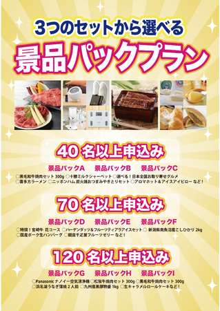 ビンゴなどの余興に最適な景品パック。開催人数ごとに選べる景品パックは全部で9つ。