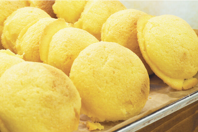 独自ブレンドの国産小麦を使用し、柔らかいだけではなくもっちり引きのある、日本人好みの食感に仕上げました。生クリーム、蜂蜜、バターを使用し、ほのかに甘く、絹のような口溶けをお楽しみいただけます。