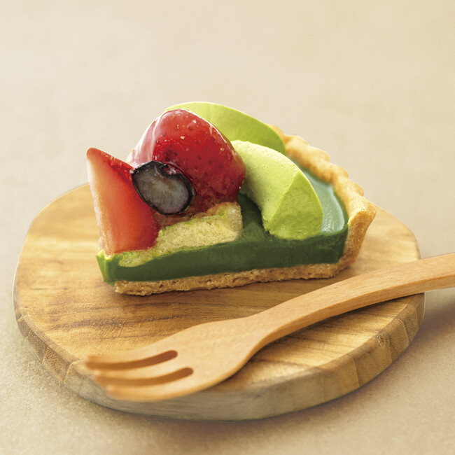 香ばしいタルト生地の上に重なる「抹茶ガナッシュ」は、宇治抹茶にホワイトチョコレートとクリームを組み合わせ、まるで生チョコのようにとろ~りとしたリッチな口あたりと、さっぱりとしたバランスの両方を実現しました。アクセントとなる、ほどよい酸味のあるいちごとベリーの爽やかさに、ふわふわっと包み込むこだわりの「抹茶クリーム」を一緒に召し上がっていただくことで、いままでにない新食感をご提供いたします。