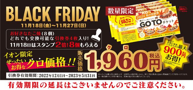 ぜったいお得な銀だこ共通回数券「GOTOチケット」が、イオンモール BLACK FRIDAYだけの96(クロ)価格で販売!!