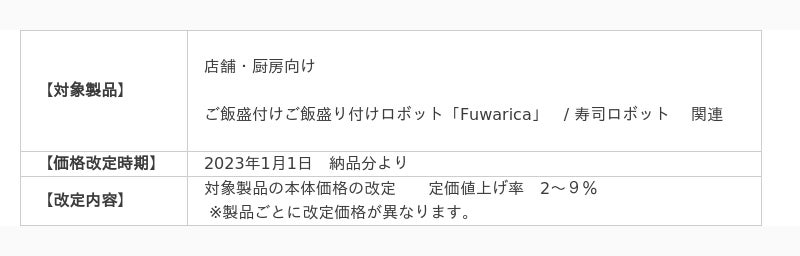 つきましては、誠に不本意ではございますが、2023年1月1日弊社納品分より、