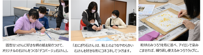 毎日つかう「石けん」や「ラップ」もサステイナブルな素材を選んで使いたい!かわいく楽しいアイテムを手づくりするコーナーです。
