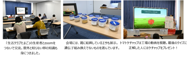 生活クラブの食べ物をつくっている生産者の講演や工場の動画を見て、どのようにつくられて自宅に届くのか学びました。