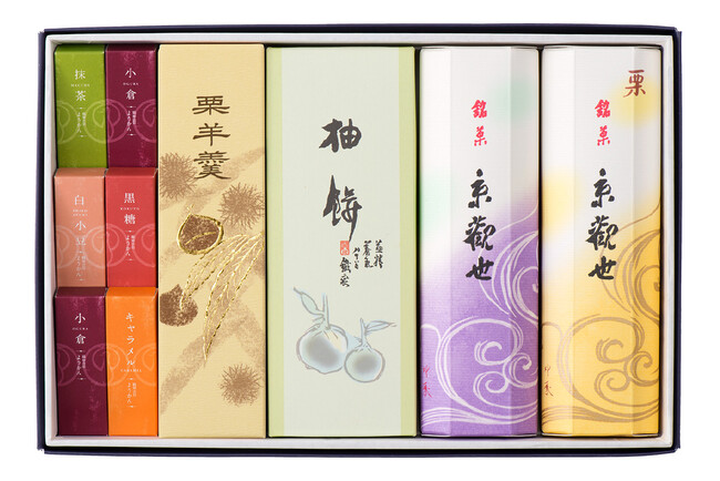 対象のお詰合せには、鶴屋吉信謹製・秋冬をほっこり楽しめる和菓子をセレクトしました。