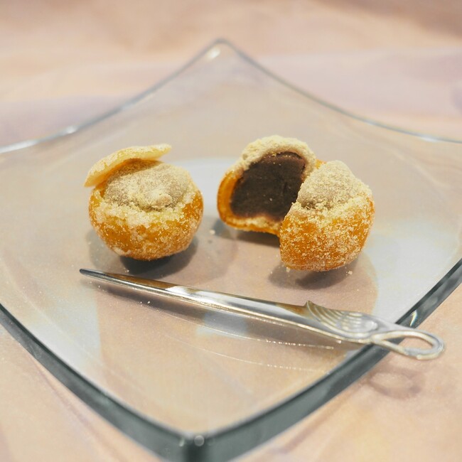 愛知県名古屋市<きよめ餅総本家>からは、熱田名物として長年愛される同店の「きよめ餅」を特別な一品に仕立てご紹介。名古屋コーチンの力強い卵白が生み出すふんわりとした生地、丹波大納言小豆のなめらかな口あたりが絶妙にマッチしています。