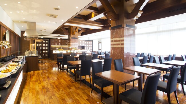 お寿司や熱々のグリルなど、週替わりの実演が人気の「ランチブッフェ」は毎日開催。落ち着いた店内には広々とした個室もあり、ランチ女子会や会議でのご利用も可能です。(席数:78席)