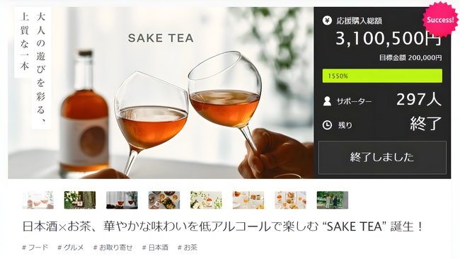 日本酒とお茶を掛け合わせた新しいジャンルのお酒「SAKE TEA」を展開するLUDENS株式会社(ルーデンス、所在地:東京都荒川区、共同創業者:永安祐大、大愛景子)は、公式オンラインストアにてSAKE TEAの一般販売を開始します。応援購入サービスMakuakeでのSAKE TEA先行販売プロジェクトでは、目標金額1,500%以上を上回る総額310万円・支援者数297人を達成。20~30代の購入者が約7割を占め、若者からの日本酒の新たな楽しみ方への期待を感じられるスタートとなりました。