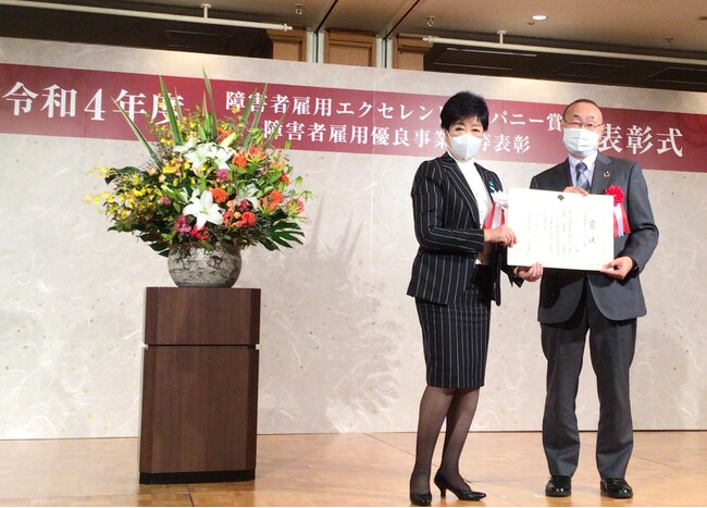 表彰式には小池百合子都知事が出席し、太田社長へ表彰状を授与しました。小池知事は「障がい者の能力開発のため、現場で着実に取り組んできた先進的企業の事例を広く発信し、誰もが自ら持てる力を発揮するダイバーシティ東京を進化させたい」と話しました。