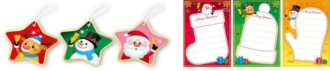 *画像左から、【切り取って飾れるオーナメント】、【切り取って使えるメッセージカード】