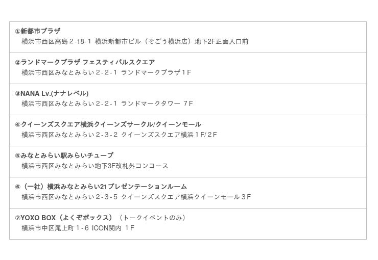 問合せ先:YOXO FESTIVAL事務局(出展担当)