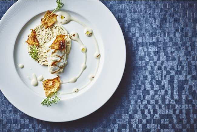 ・真ふぐフィレのグリル マスタード風味の根セロリ