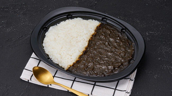 いかすみ入りソースを使用し、海老やカニなどシーフードのコクが感じられる、黒いカレーです。