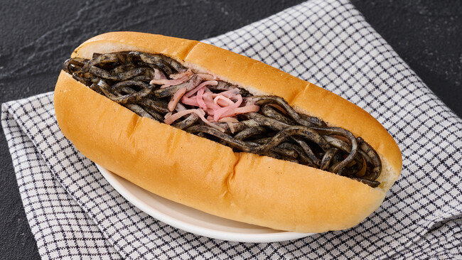 東京都東村山市のご当地焼きそば「黒焼そば」をパンにサンドしました。