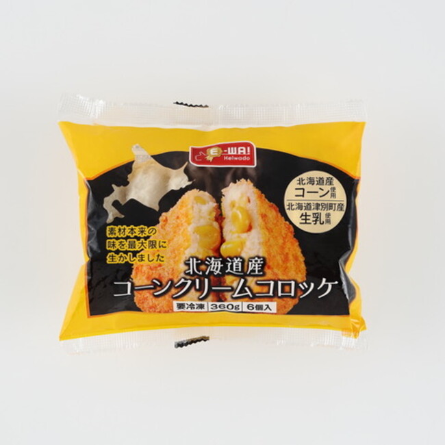 「北海道産コーンクリームコロッケ」は、北海道産のコーンと生乳を使用しており、濃厚なベシャメルソースにほんのり甘みが利いたやさしい味わいに仕上げています。
