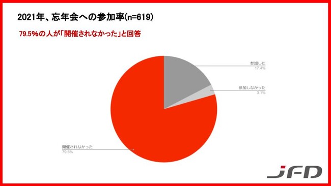 新型コロナウイルスの感染拡大後、2年目を迎えた年末、79.5%の人が忘年会は「開催されなかった」と回答しました。