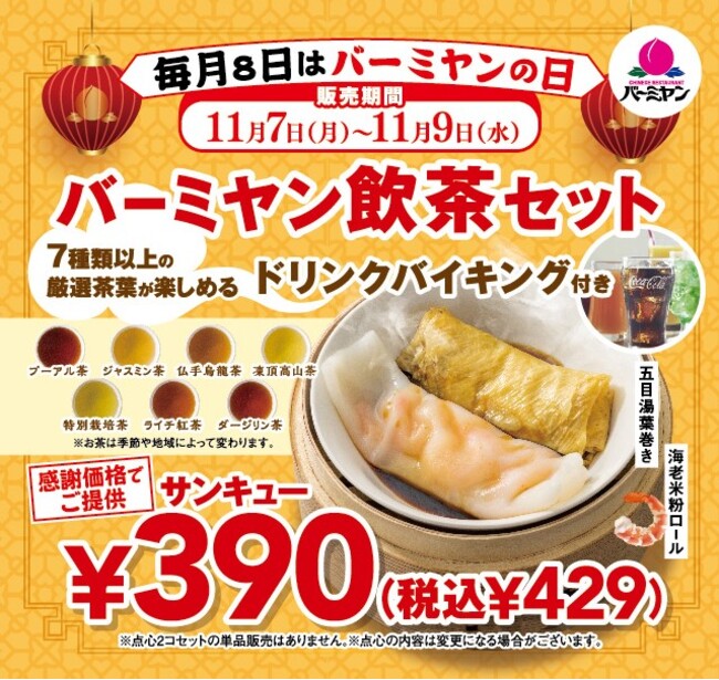 「飲茶セット(限定点心2コセット&ドリンクバイキング付き)」