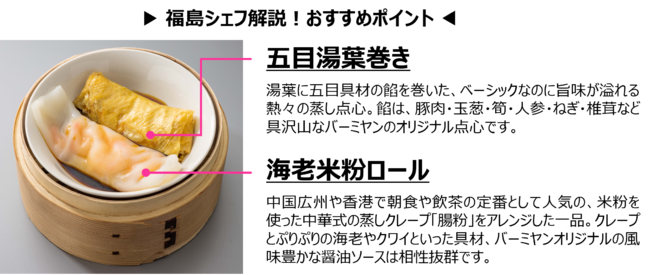 “春巻きをはじめとした巻物点心には、頭から尾まで食べ、終始一貫という縁起が良い意味が込められています。お客さまの幸福を願ってご提供いたしますので、是非この機会にお召し上がりください!”