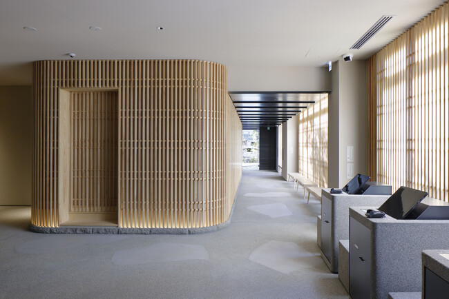 大浴場は加賀温泉の昔ながらの総湯(公共浴場)にみられるロの字型の湯船や、かけ湯用の湯おけのデザインを、石川県で採れる滝ヶ原石を用いて表現しました。客室と同様にゆるやかな曲線の天井に包み込まれるような空間で、旅の疲れを癒す入浴をお楽しみいただけます。地元の間伐材や柑橘類などを再活用した期間限定の香り湯や季節湯も提供予定です。
