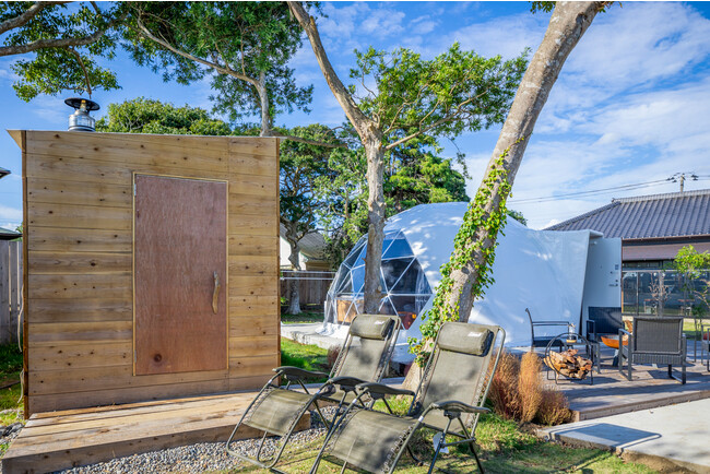 他のお客様を気にせず、グランピングで“ととのう”極上体験を。サウナで身体を温めた後は水風呂に入り、外気浴では心地よい風を感じながら、優雅な時間をお過ごし頂けます。