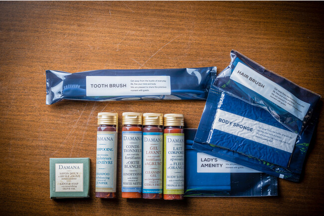タオルや歯ブラシなどの基本的なものはもちろんのこと、ハーブエキスを配合した「DAMANAシリーズ」のシアメニティもをご用意しております。