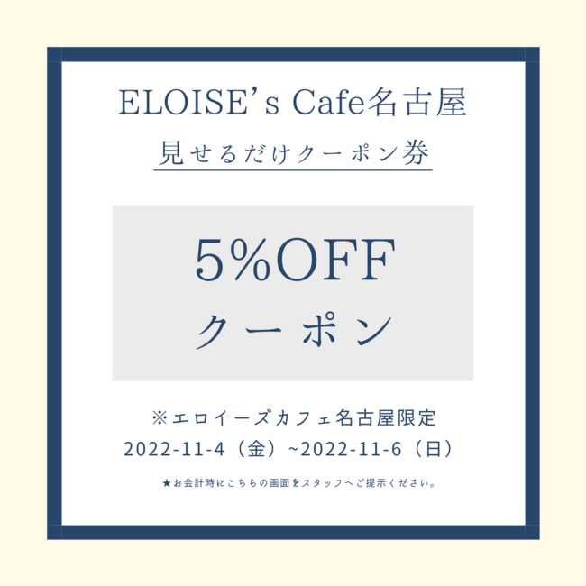 台湾・台中夜市開催に伴いELOISE’s Cafe名古屋久屋大通公園店では、お得に食事が楽しめる5%OFFクーポンを配布致します!