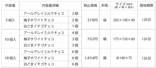チョコレートは苦みが少なく甘みを強く感じるホワイトチョコレート、柚子のほんのりとした苦み・爽やかな香りとうまく調和します。