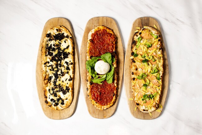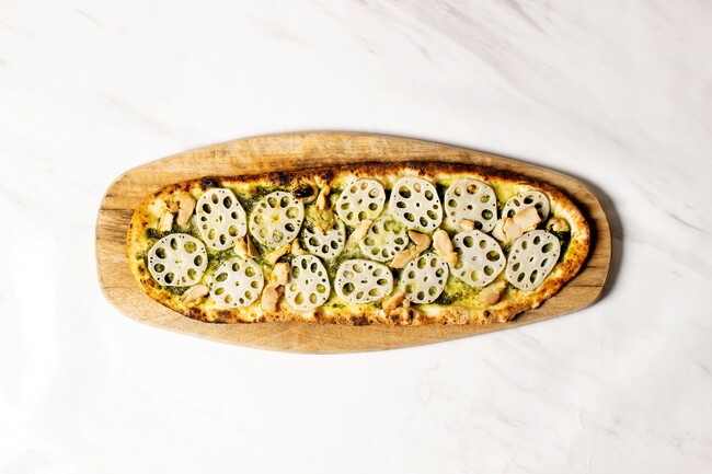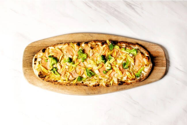 国産レンガを使用した特注窯で焼き上げる看板メニューのピザは、すべてのフレーバーをボードスタイルで提供。M/Lの2サイズ展開で、メインでも、軽い前菜としてクラフトビールやワインと合わせて楽しむこともできます。