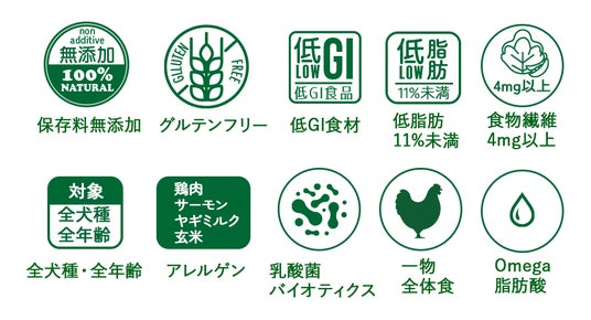 - 形態:ドライフード(保存料不使用・小麦グルテンフリー)