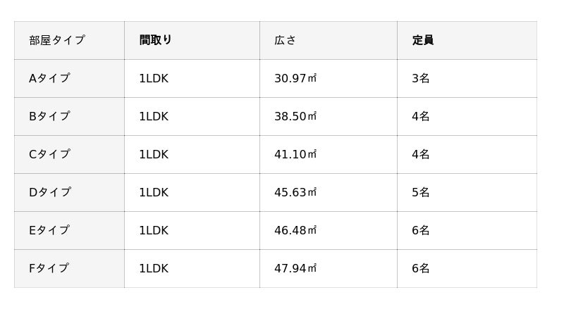 キッチンや洗濯機、家具家電などの充実した設備に加え、一部客室にはプロジェクターを完備し、映画やスポーツ観戦を楽しめます。さらにオートロックや宅配ボックスも備え、安心で快適な暮らしを実現します。最大6名まで滞在可能な居室もあり、家族やグループでの長期滞在にも最適です。