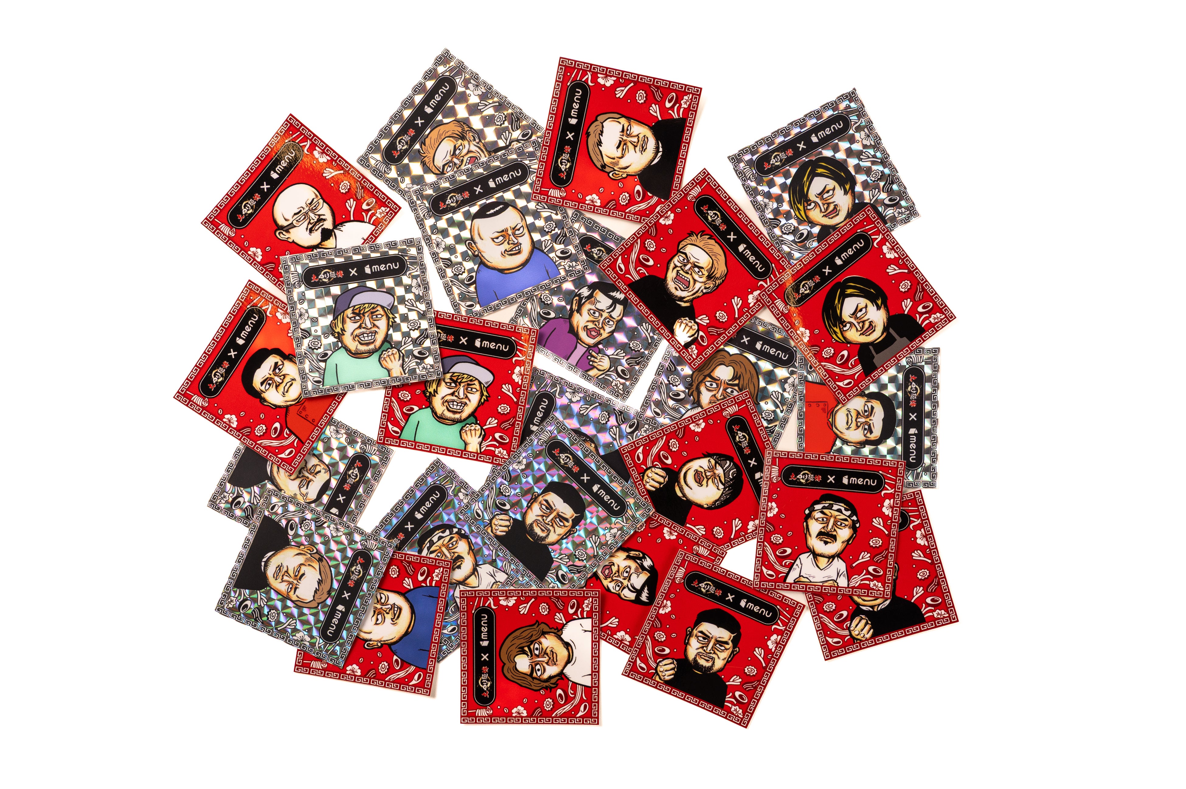 大つけ麺博のラーメンをmenuでよりお楽しみいただくため、10月29日(火)より、menuアプリにて大つけ麺博の商品をご注文いただいた方を対象に、ラーメン店主ステッカーをランダムでプレゼントします。通常版13種類と、ホログラム仕様の13種類をあわせた全26種類で、大つけ麺博公式パンフレット用に描き下ろされたイラストを、menuが特別にステッカー化した限定デザインです。