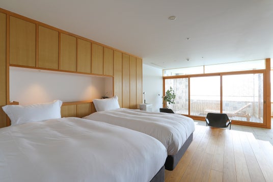 【デラックスツインルーム陽光 定員2名】絶景をひとりじめ、露天風呂とサウナ付き客室