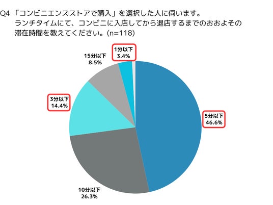 【Q4】Q3では、「購入から食べ終わるまでの時間を最小限にしたい」(28.0%)が第4位となっていましたが、ランチタイムでのコンビニの滞在時間についても質問をしました。