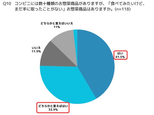 【Q10】コンビニ派の方々に「食べてみたいけど、まだ手に取ったことがない」お惣菜商品があるか伺ったところ、「はい」と「どちらかと言えばはい」の合計は75.4%で、4人のうち3人がお惣菜商品に関心を持っていることが明らかになりました。