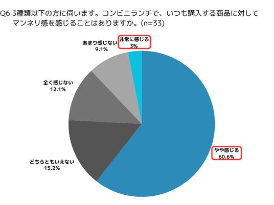 【Q6】一方で、3種類以下のメニューしか購入していない人たちのうち、実に63.6%が、同じメニューのローテーションによりマンネリを感じていることも明らかになりました。