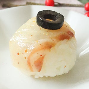 生ハムの塩味が味を引き締め、クリーミーなチーズがまろやかにまとめてくれる、見た目も愛らしい手鞠寿し。