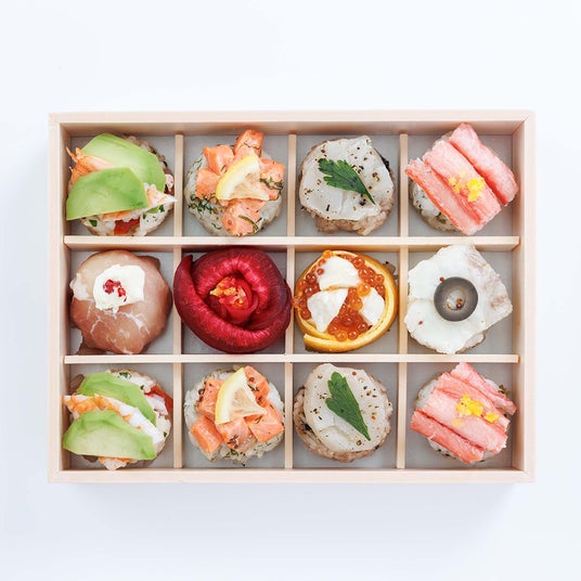 正月やクリスマスにはもちろん、いつもの食卓をおしゃれに演出したい方、ワイン好きな方への贈り物など。食に驚きと華やかさを提供する「パリ手鞠寿し」を考案しました。シャンパンやスパークリングワインなどのお酒や、洋風のスープなどと一緒にお召し上がりいただくのもおすすめです。記念日や特別な料理でお祝いしたい日を彩る手鞠寿しです。