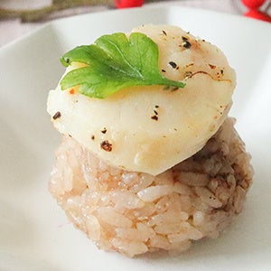 『バルサミコ酢飯の炙り帆立手鞠』