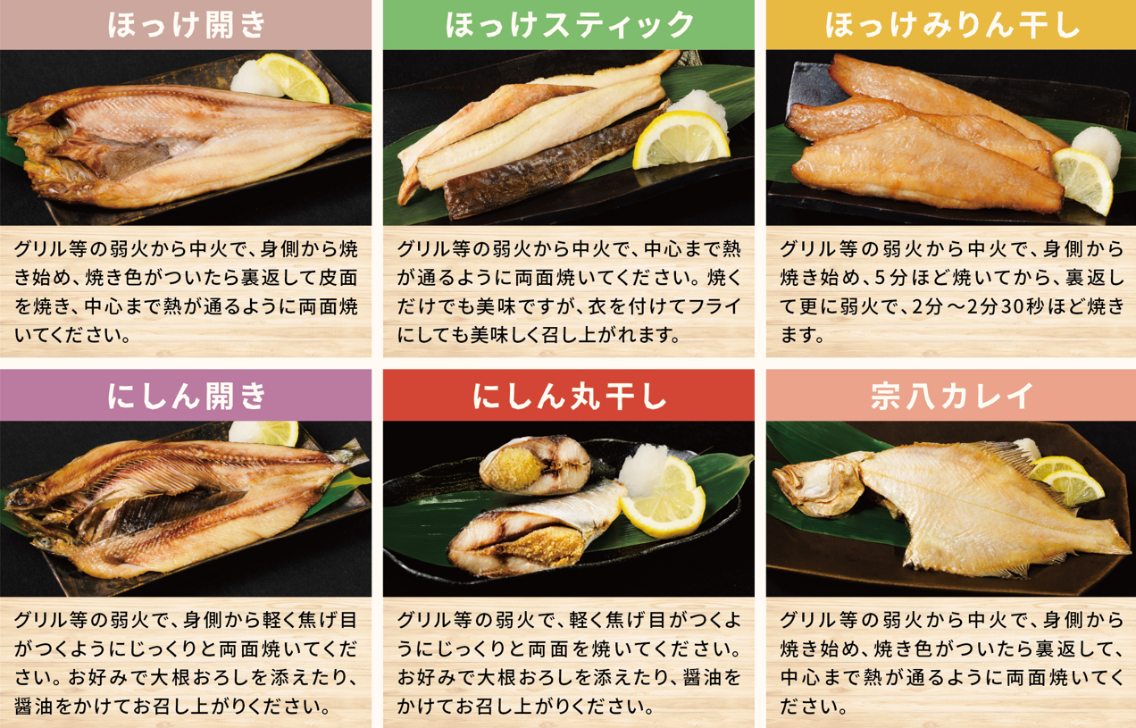 ≪ ラインナップは豪華全6種類 ≫ 北海道産の「ほっけ」「にしん」「宗八カレイ」