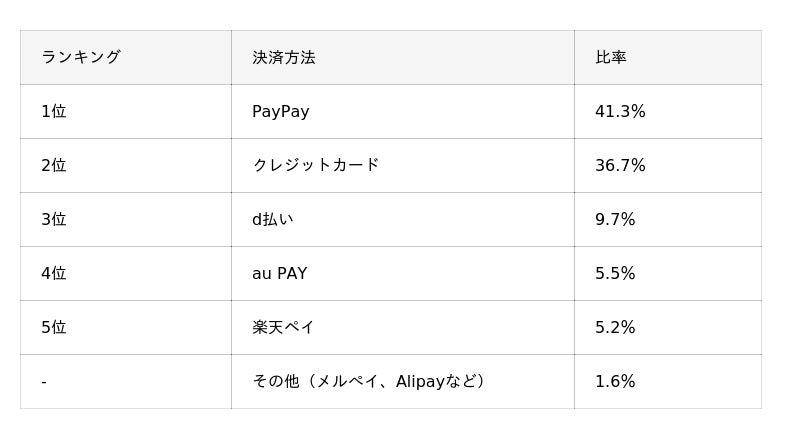 なお、過去1年間で多く利用された決済方法は、1位は「PayPay」(41.3%)、2位は「クレジットカード」(36.7%)の2つで、全体の78%を占めていました。