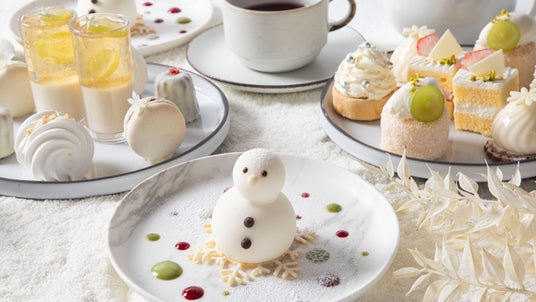 「白雪 ‐ WHITE MOMENTS ‐」は、冬の静けさや繊細な雪をテーマに、「マスカルポーネクリーム タルト」や「ホワイトチョコ カヌレ」など、白を基調としたスイーツ9種類に、セイボリー、ソフトドリンク飲み放題がセットになったアフタヌーンティー。