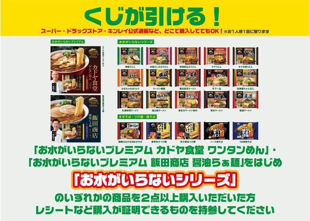 「お水がいらないプレミアム カドヤ食堂ワンタンめん」や「飯田商店醤油らぁ麺」をはじめ、