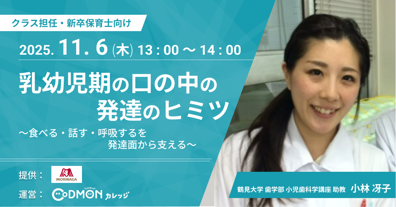 当社では、人々が食べたいものを好きなだけ、いつまでも自分の歯でしっかり噛んで食べられる世界の実現を目指し、2024年7月より「口腔ケア」プロジェクトに取り組んでいます。これまでに、子どもから大人まで、おいしく、たのしく続けられるおくちケアのための情報発信サイトとして、「森永おくち研究所」(https://okuchi-lab.jp)を公開しました。さらに、保育・教育施設の業務支援を行うICTサービス「CoDMON(コドモン)」や、保育現場で役立つ知識やスキルを身に付けられるオンライン研修プラットフォーム「コドモンカレッジ」の提供などを通じて、保育現場の業務効率化と保育の質向上を支援しているコドモンと、2025年6月に「子どもの健康教育・保健指導の支援に関する包括連携協定」を締結するなどプロジェクトを推進しています。