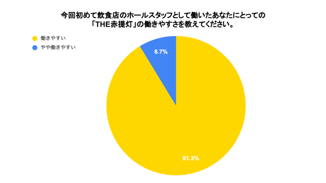 ??はじめて飲食店のホールスタッフで働くワーカーの約91%から「働きやすい」との評価