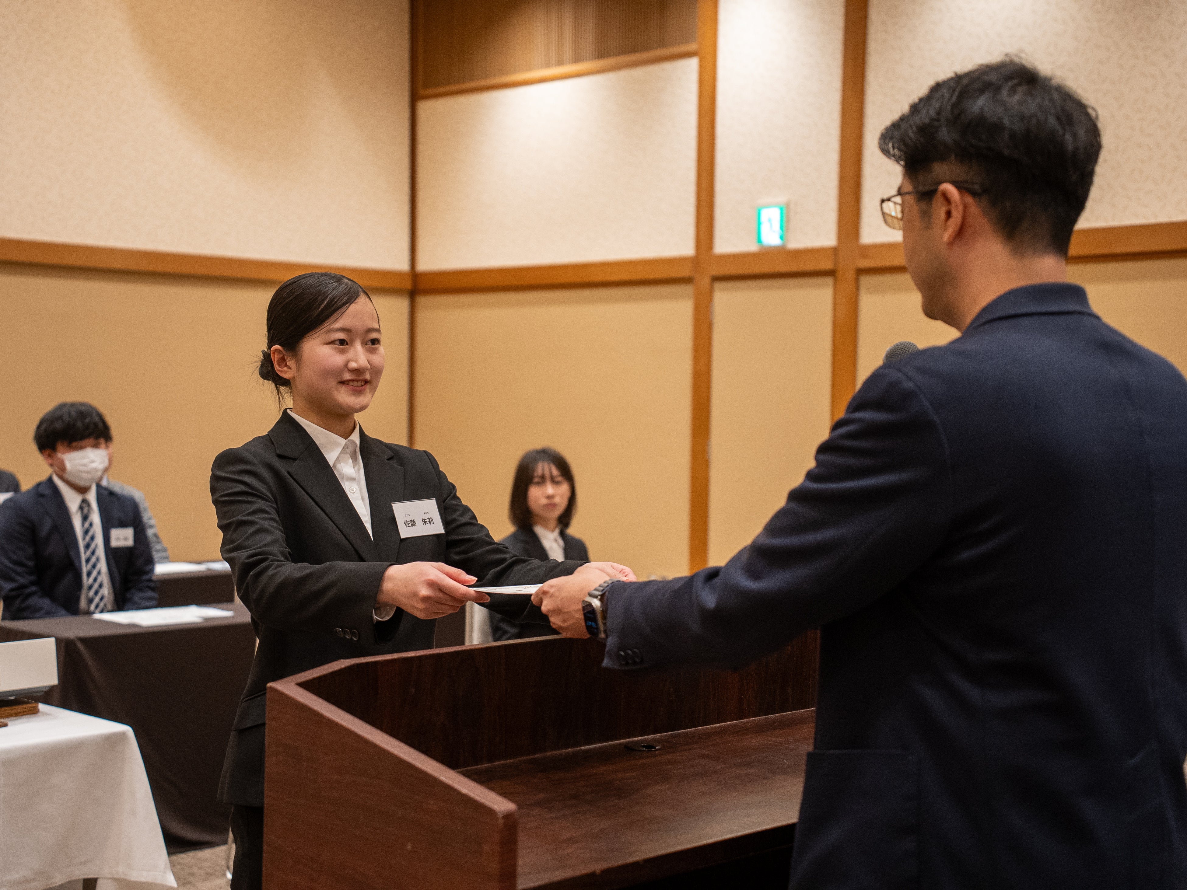 内定式では、内定者一人ひとりに内定証書の授与が行われました。また、内定者同士や社員との交流を通じて、社会人になることへの期待感を高めることを目的にしたワークショップ(コミュニケーションワーク)も実施いたしました。
