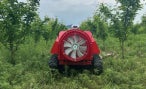 クローラーシャーシと低重心設計により、傾斜地や狭隘地でも安定走行。果樹全体をカバーするスプレ ーヘッドで高い防除効果。