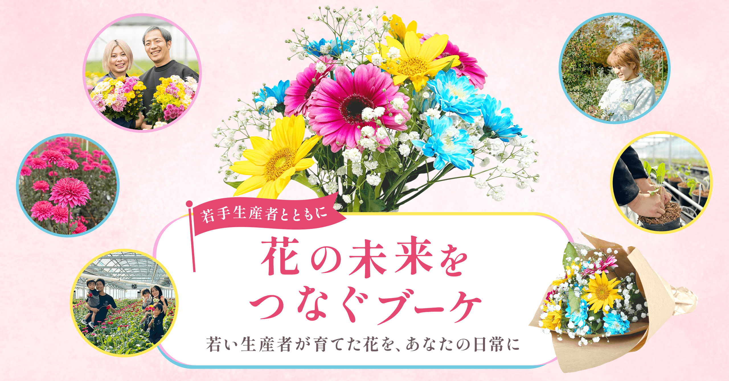 後継者不足や生産者の高齢化など、花き業界の構造的課題が深まる中、本企画は20代~30代の若手生産者が育てた花だけで束ねることで、次世代を担う生産者の挑戦を広く伝え、花文化を未来へとつなぐことを目的としています。